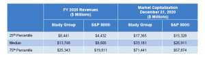 The Study Group companies cover each major industrial sector of the S&P 500®. The median revenues and market capitalization of the Study Group and S&P 500® are compared in the table below.