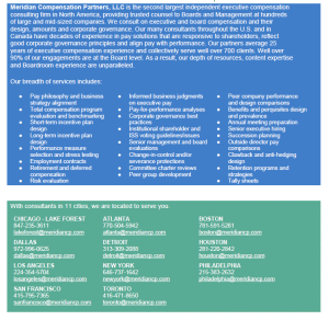 Donald Kalfen, a partner of Meridian Compensation Partners, LLC is the principal author of this Study. Other partners and consultants of the firm assisted in the preparation of the Study. Questions and comments regarding the Study should be directed to Mr. Kalfen at dkalfen@meridiancp.com or (847) 235-3605.