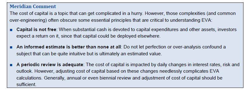EVA has been around for a long time but has gained little traction as a performance metric or internal financial metric. Perhaps coincidentally, ISS’s newfound interest in EVA comes on the heels of its purchase of EVA Dimensions, a consulting firm that measures and values corporate performance based on the EVA framework.