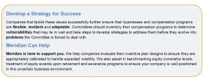 This report is a publication of Meridian Compensation Partners, LLC, provides general information for reference purposes only and should not be construed as legal or accounting advice or a legal or accounting opinion on any specific fact or circumstances. The information provided herein should be reviewed with appropriate advisors concerning your own situation and issues. www.meridiancp.com