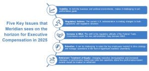 Meridian foresees five significant issues that Compensation Committees may face in 2025. Anticipating these issues may provide opportunities for strategic planning and positive outcomes despite a challenging business environment.